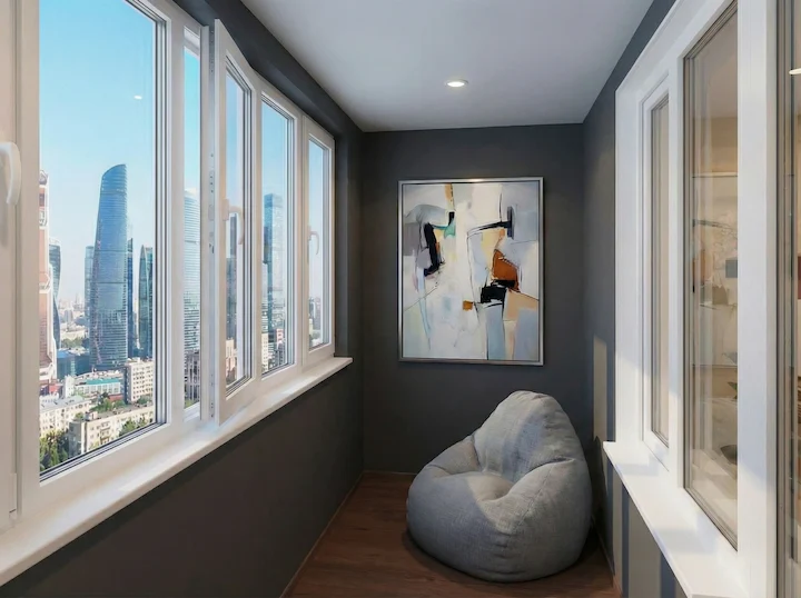 Система панорамного остекления позволяет гармонично объединить интерьер комнаты с пространством лоджий, создавая ощущение лёгкости и простора. Такие окна не только украшают фасад, но и служат функциональной частью конструкции, обеспечивая высокий уровень звуко- и теплоизоляции. После установки выполняется внутренняя отделка, соответствующая общему стилю квартиры — от классической до современной. Благодаря этому лоджия превращается в уютную зону отдыха или рабочее пространство, сохраняя эстетичный внешний вид и удобство использования.