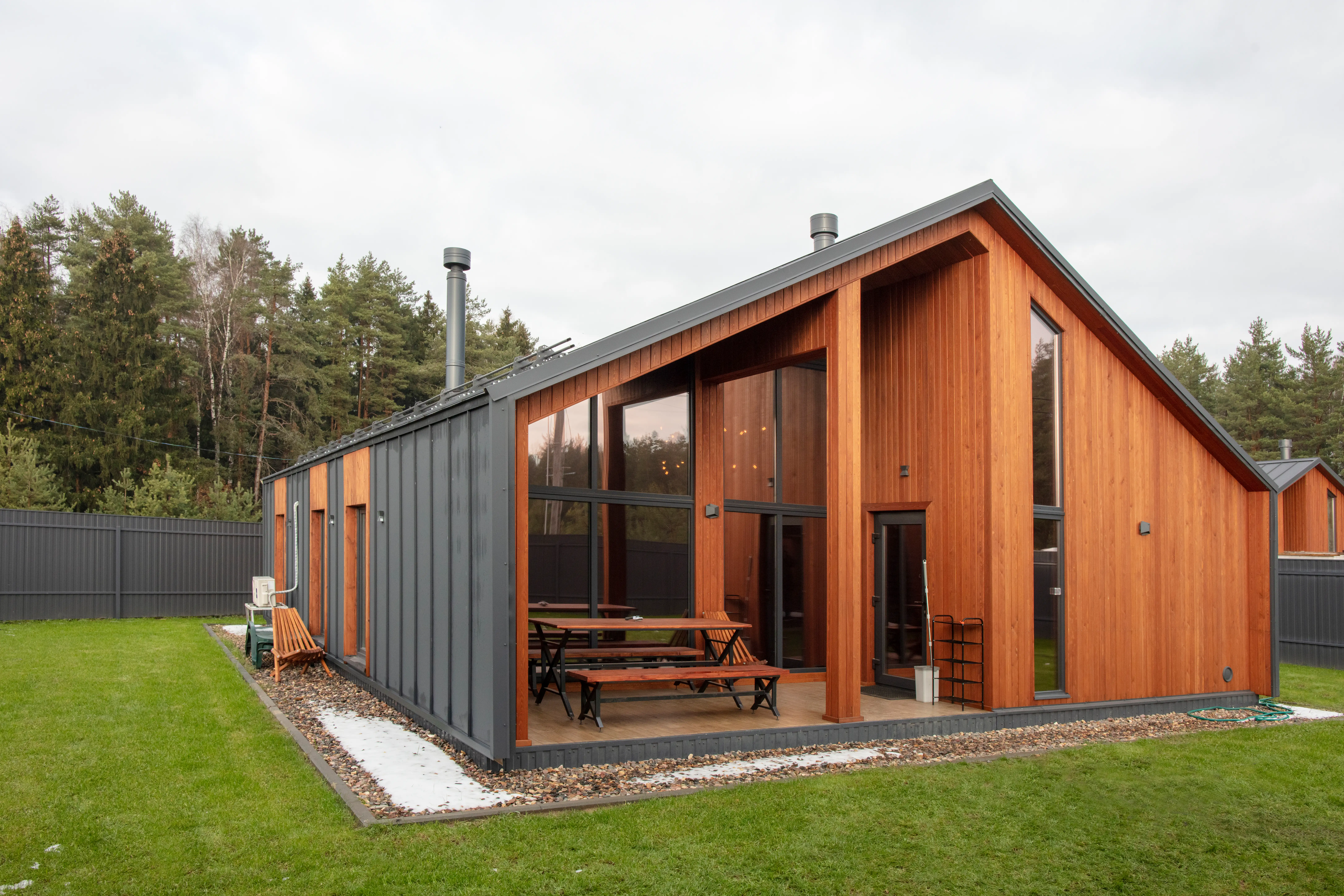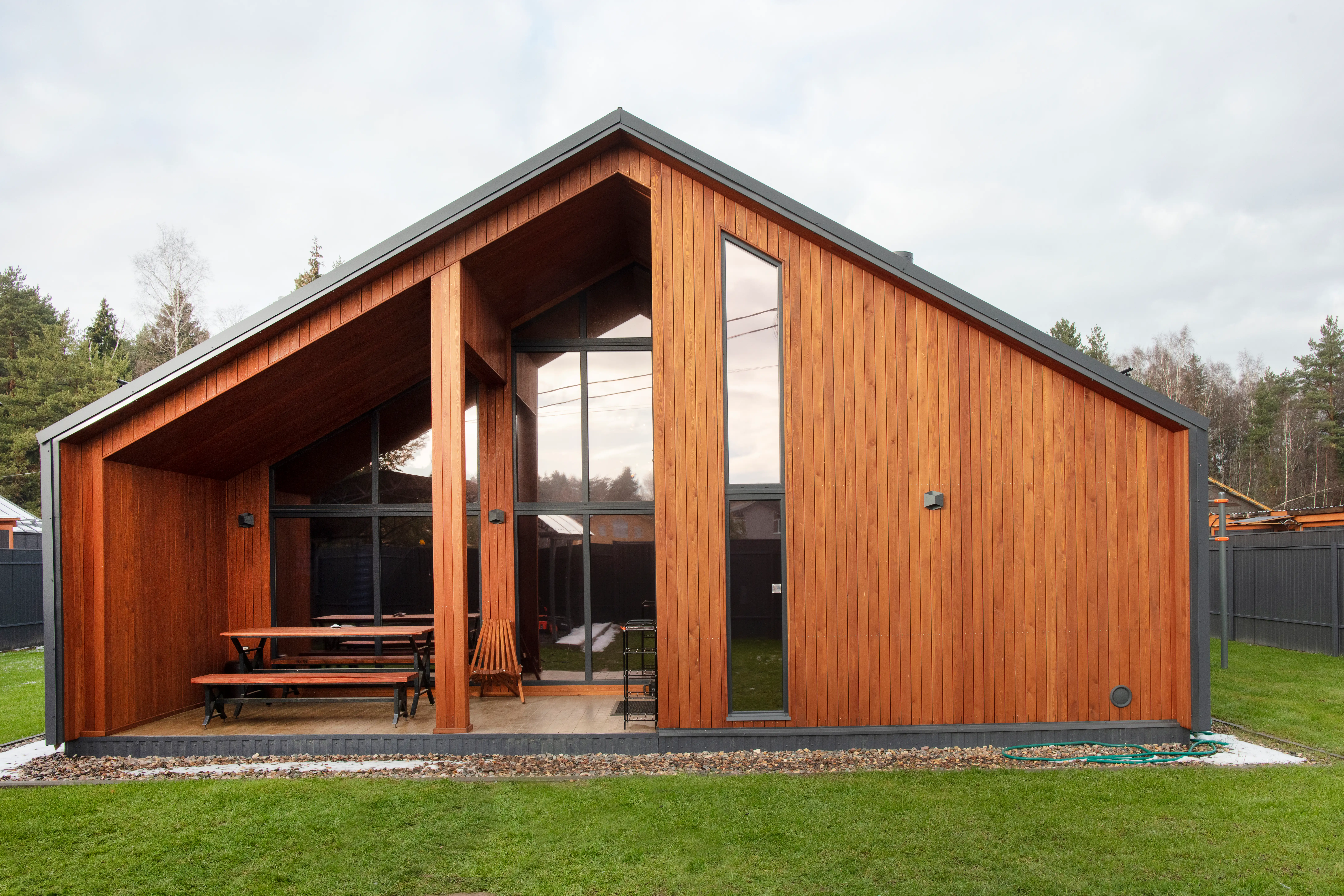 Графитовые окна подходят, если нужен тёмный оттенок, но хочется избежать слишком резкого визуального контраста.