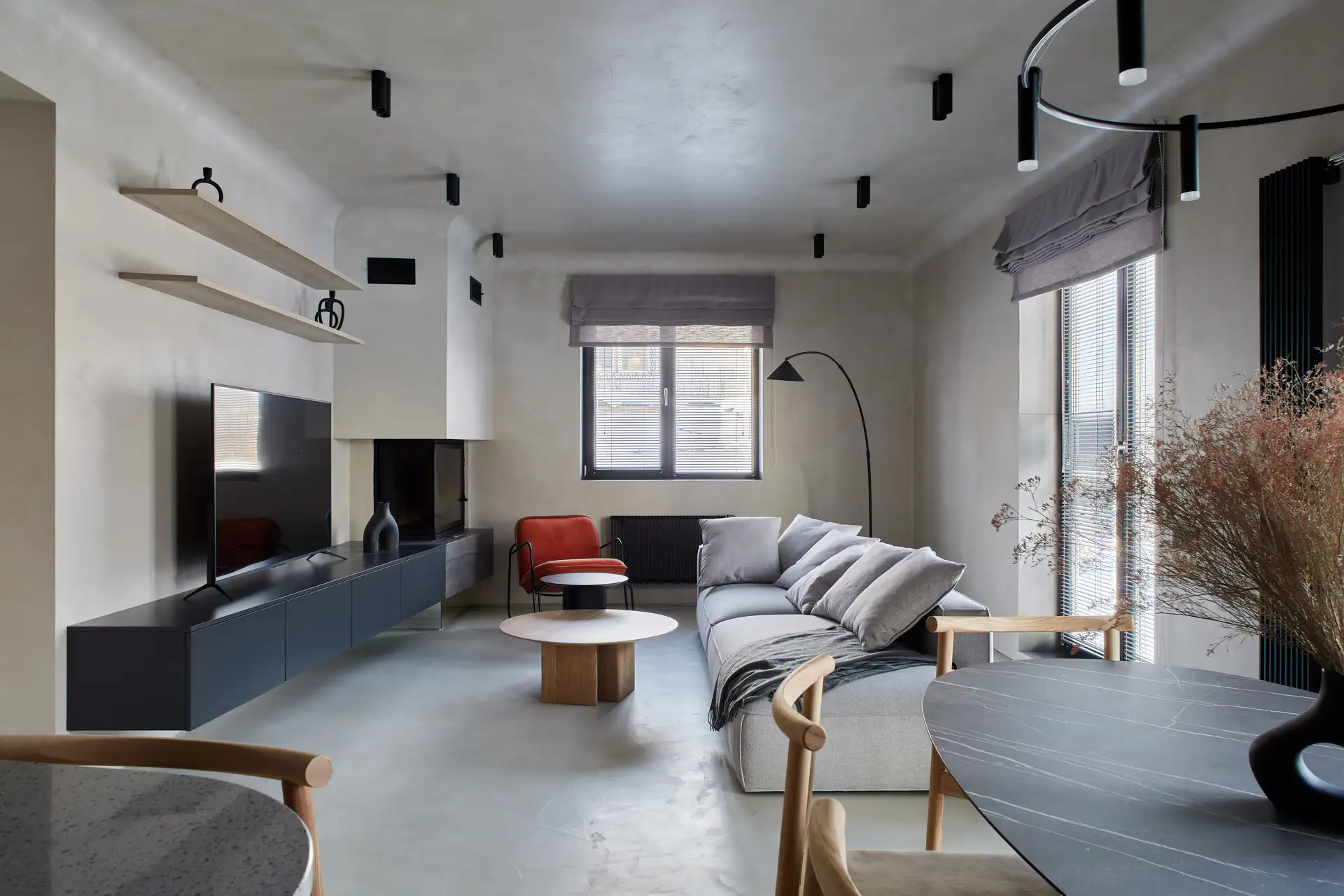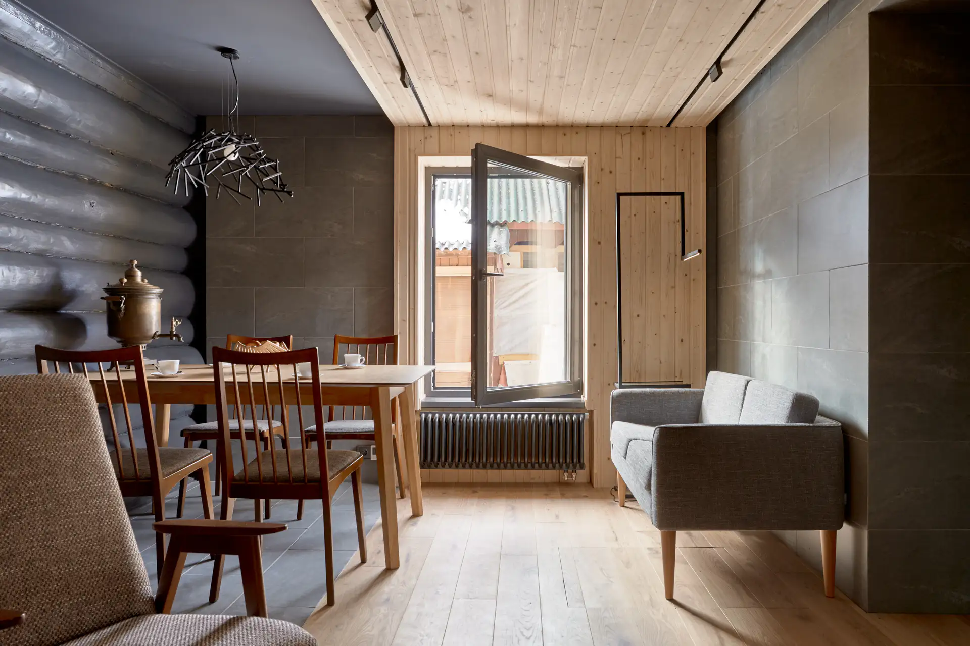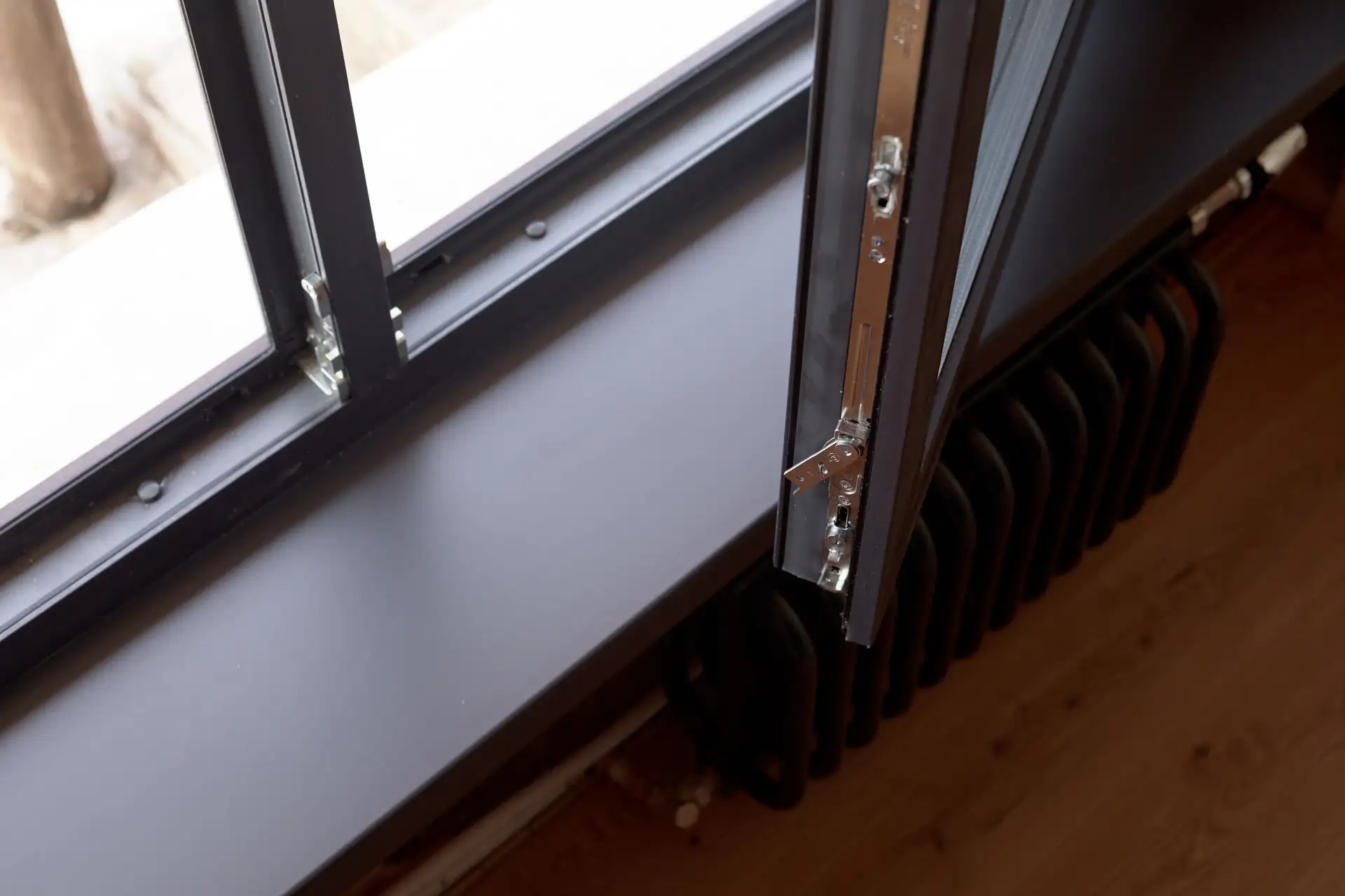Графитовые окна выбирают за мягкий тёмный оттенок, который выглядит спокойнее чёрного, но выразительнее светло-серых рам. В квартирах и частных домах они хорошо смотрятся в светлых интерьерах, в помещениях с холодной или природной палитрой.