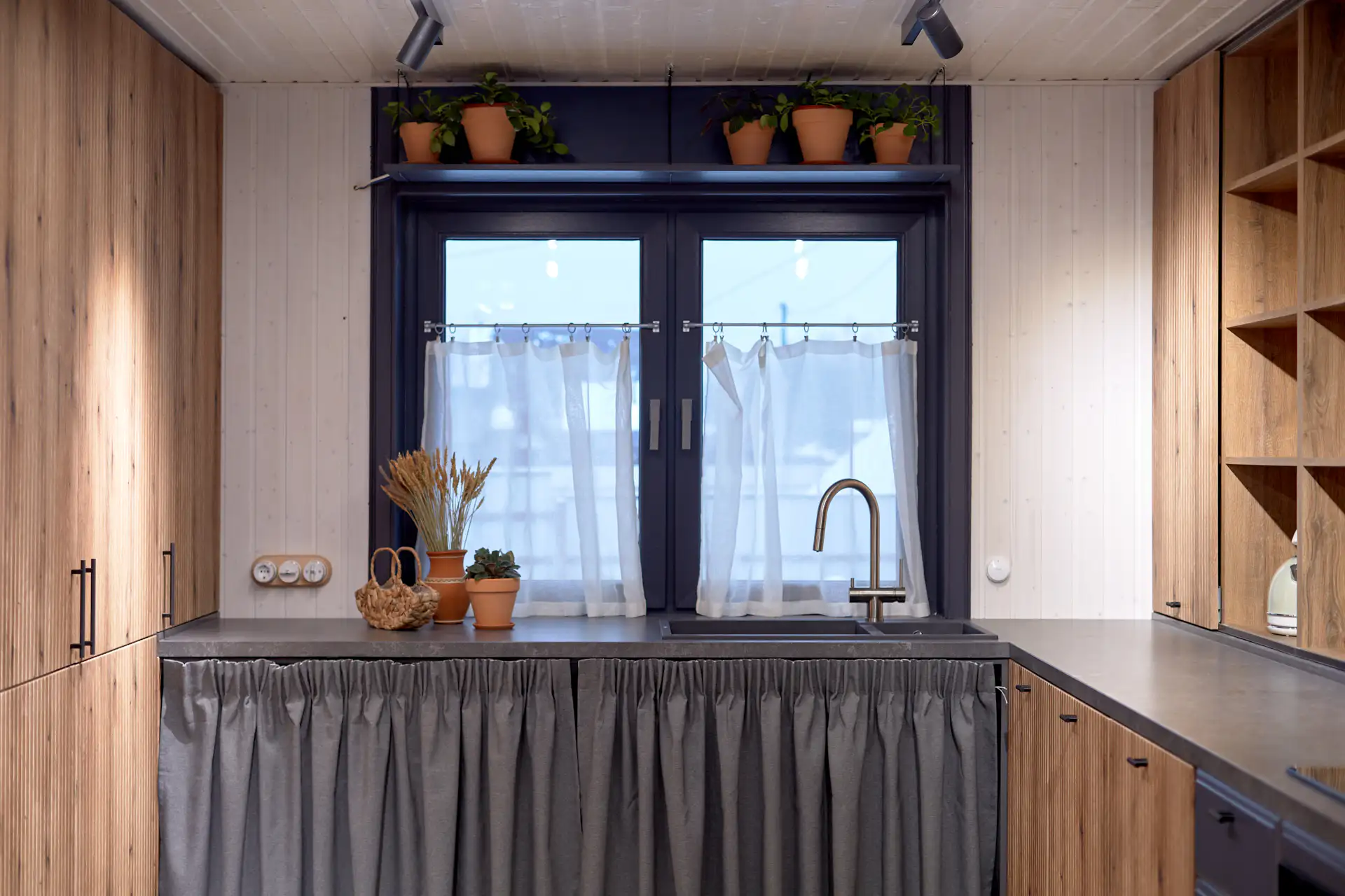 • Подходят для разных помещений. Тёмные рамы устанавливают в жилых комнатах, на кухнях и балконах, а также в панорамных проёмах.